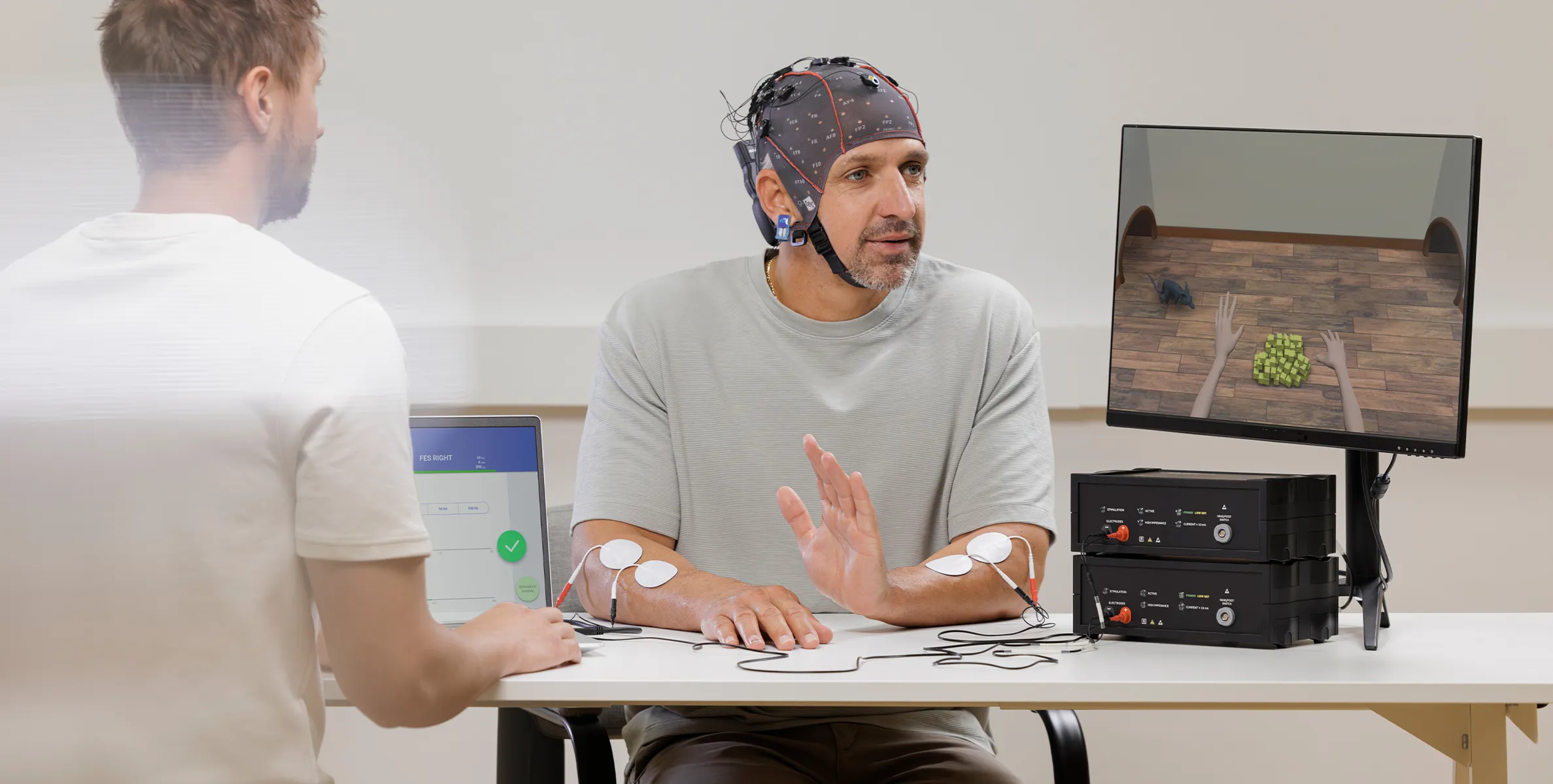 recoveriX ist eine hochmoderne Neurorehabilitationstechnologie, die robotergestützte Therapie mit sensorischem Feedback verbindet. Nach ausführlicher Anamnese und Videoanalyse passt sie Impuls um Impuls an Ihr Nervensystem an, aktiviert Neuroplastizität und verbessert motorische Funktionen bei Schlaganfall, Multipler Sklerose und Parkinson nachhaltig.